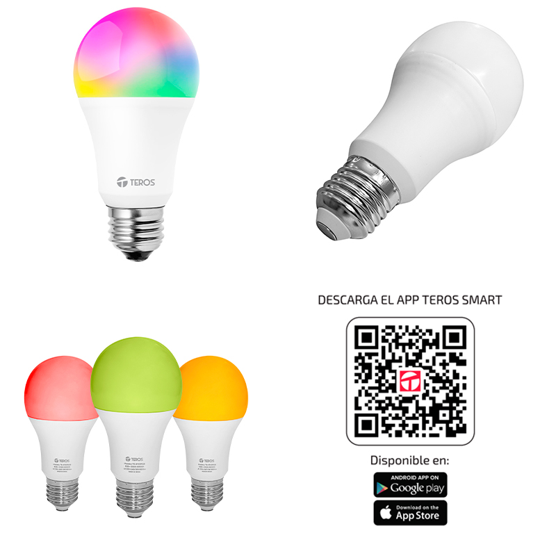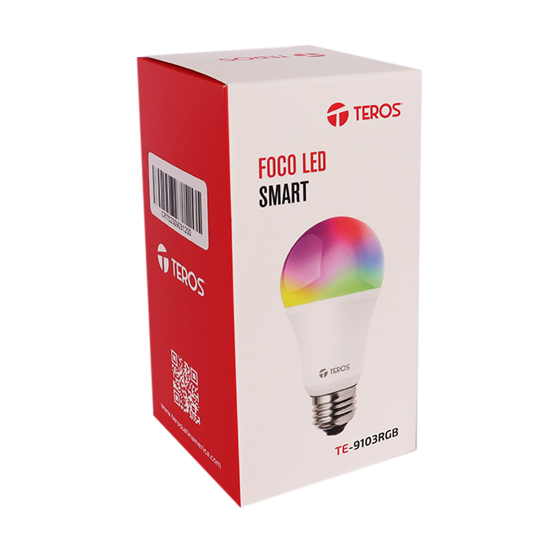 Foco inteligente led teros te-9103rgb, iluminación rgb, potencia de 9w, socket e27, wi-fi.