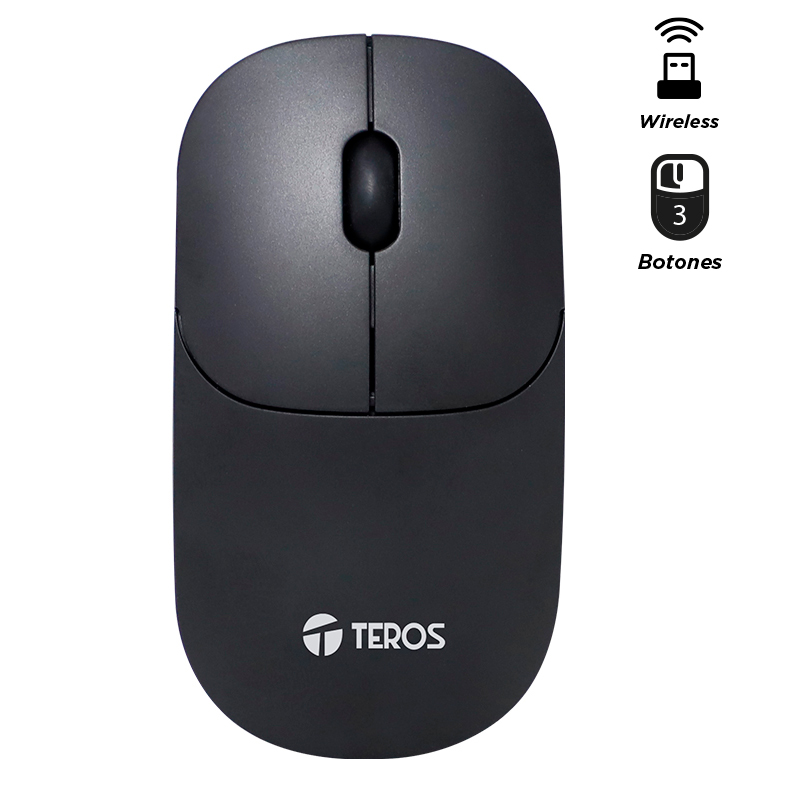 Mouse óptico inalámbrico teros te-1217s, 1000 dpi, receptor usb, 3 botones.