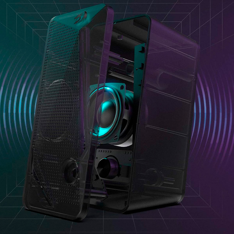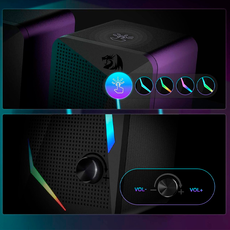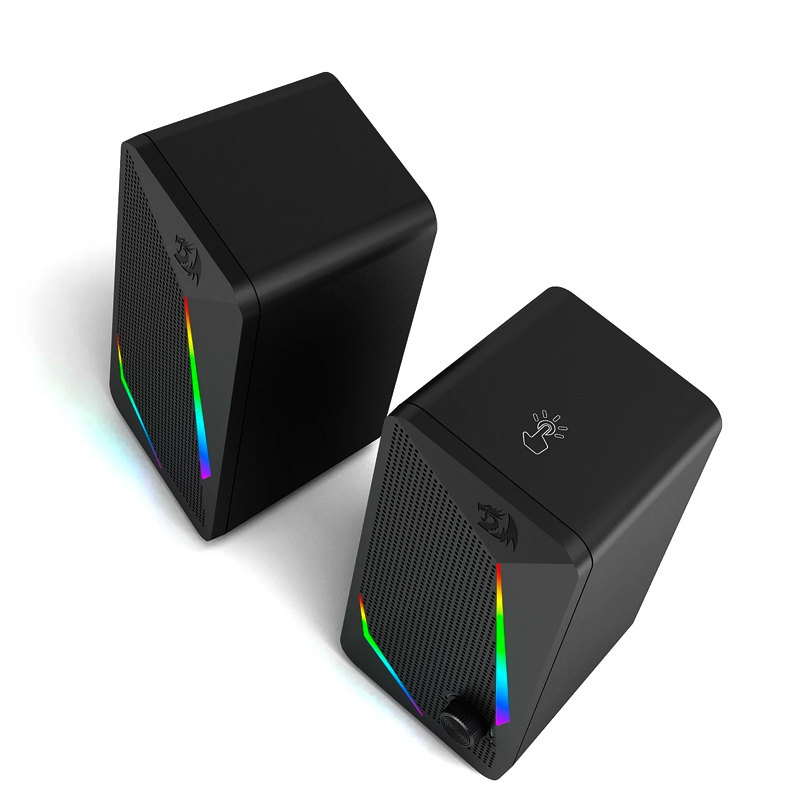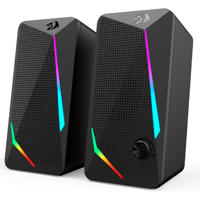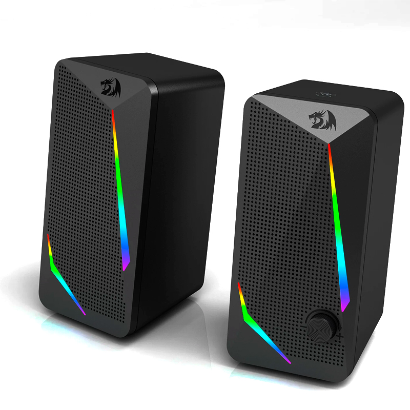 Parlantes de escritorio redragon gs510, 2.0-canales, retroiluminacion led rgb, usb, 3.5mm.