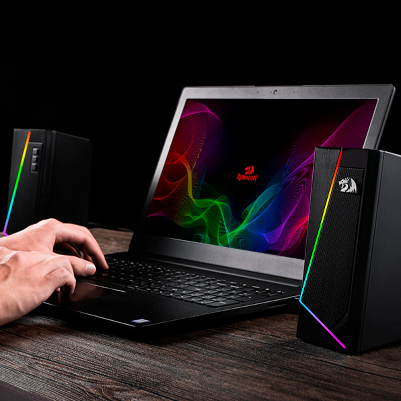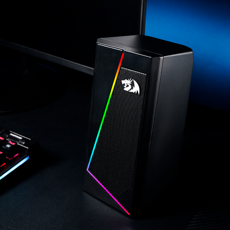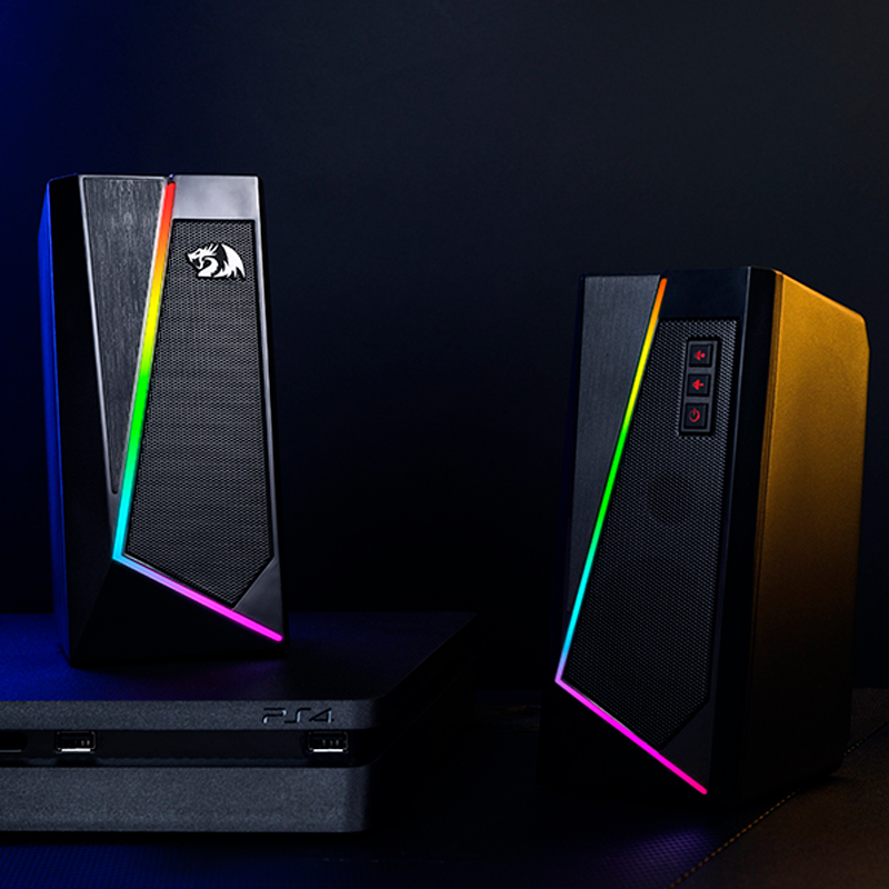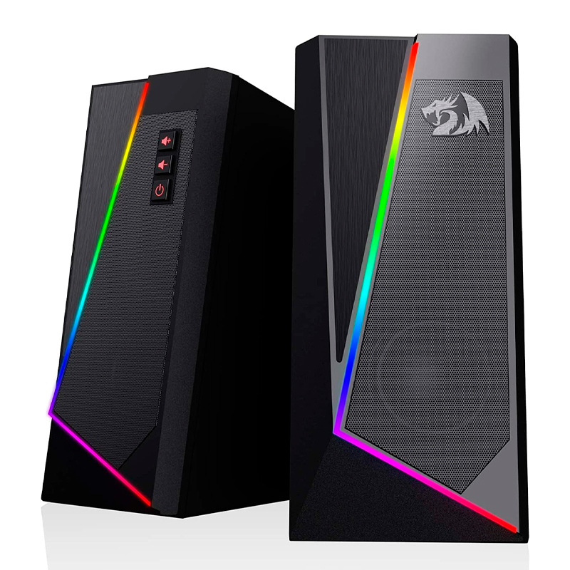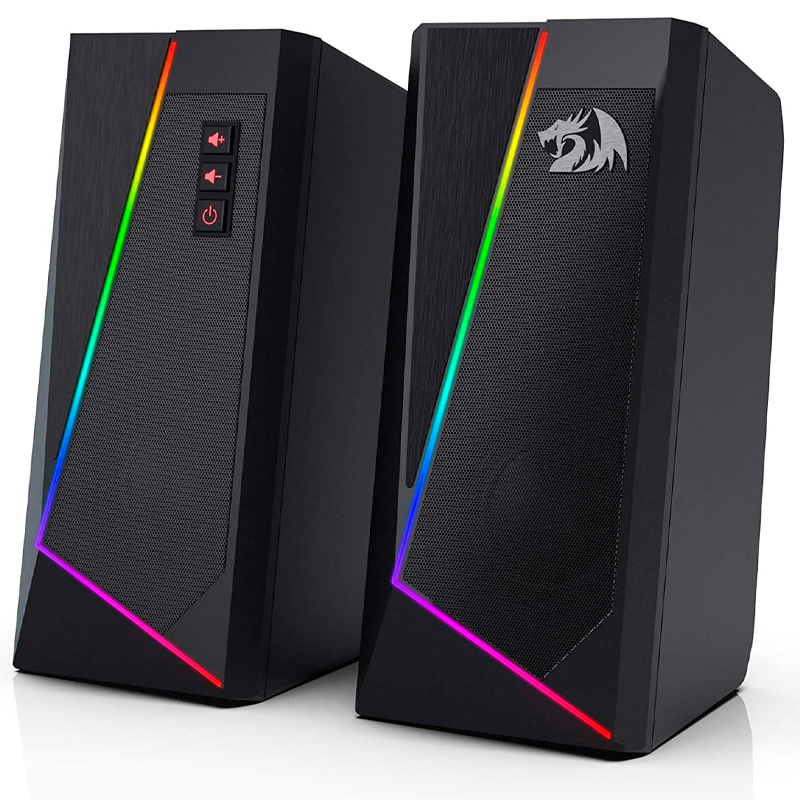 Parlantes de escritorio redragon gs520, 2.0-canales, retroiluminacion led rgb, usb, 3.5mm.